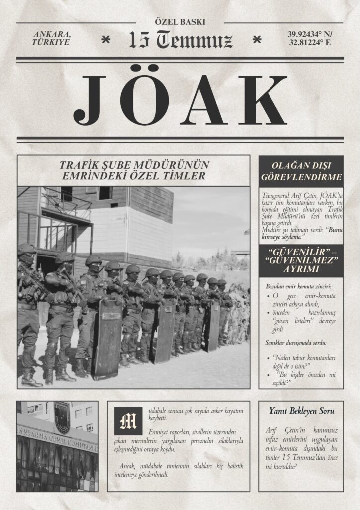 15 Temmuz 2016 gecesi, Türkiye’nin yakın tarihine kara bir sayfa olarak geçti. O gece yaşanan askeri hareketlilik yalnızca sözde darbe girişimiyle değil, aynı zamanda alınan olağan dışı kararlarla da dikkat çekti. Jandarma Genel Komutanlığı Harekât Başkanı Tümgeneral Arif Çetin’in, teamüllere aykırı biçimde Jandarma Trafik Şube Müdürü Ö.M. Ö.’yü, JÖAK’ta hazır bulunan onlarca tim komutanı yerine müdahale timlerinin başına görevlendirmesi, hâlâ yanıtı aranan sorulardan biri.